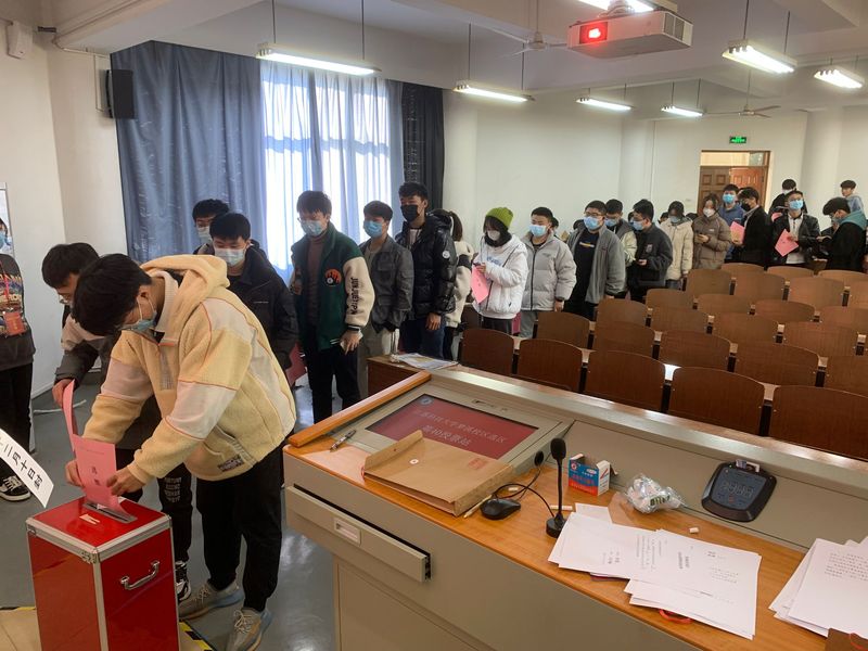 投票现场,工作人员按照主持人的指引开箱检查并封箱处理。师生选民严格落实疫情防控要求,佩戴口罩,保持间距,依次领取并认真填写选票,在工作人员引导下,有序走到票箱前郑重投下选票。师生选民以主人翁的态度认真对待区人大代表选举,珍惜自己的民主权利,以饱满的政治热情参加投票选举,处处呈现着庄重、民主、和谐的气氛。
