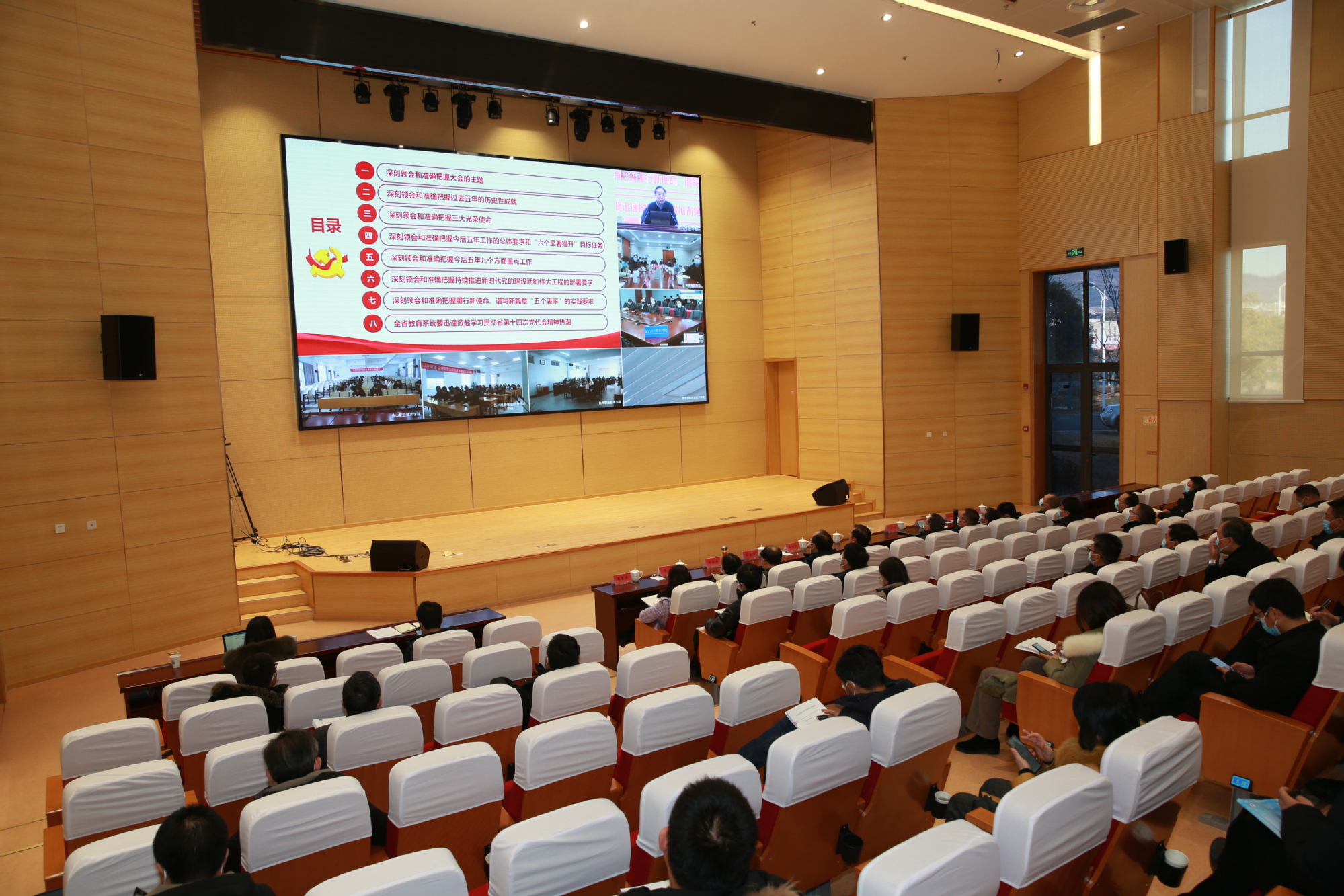 12月27日下午,省委宣讲团成员,省委教育工委书记,省教育厅厅长、党组书记葛道凯围绕省第十四次党代会精神作专题宣讲。宣讲报告会以电视电话会议形式召开,万象城官网在长山校区行政楼100号报告厅设分会场,校领导周南平、景旭文、许俊华、汤建、郑培钢、谈镇、任南,党委常委、组织部长李恒川,宣传部长周春燕,统战部长刘新波,中层正职干部、师生代表等80余人聆听了宣讲。