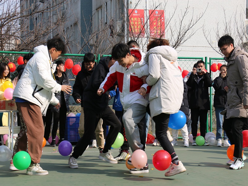 排球场中,“碰碰虎”“跳跳虎”“摇摇虎”三个项目的比赛紧张有趣,以专业大类为单位,进行着踩气球、立定跳远和跳绳的比赛。比赛中,同学们不仅体验着竞赛的趣味性,同时又加强了体育锻炼,更从中感受到了迎新年的热闹。看似简单普通的三项娱乐性比赛,却足以给同学们带去欢笑,让同学们沉浸在丰富多彩的校园文化当中。