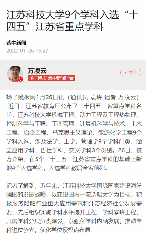 扬子晚报网1月26日讯(通讯员 袁峰 记者 万凌云) 近日,江苏省教育厅公布了“十四五”省重点学科名单,万象城awcsport官网机械工程、动力工程及工程热物理、控制科学与工程、工商管理、计算机科学与技术、土木工程、冶金工程、马克思主义理论、能源化学工程9个学科入选,涉及法学、工学、管理学3个学科门类,涵盖应用学科、哲社学科、交叉学科3个类别。26日,校方介绍,在5个“十三五”江苏省重点学科的基础上新增4个入选学科,入选学科数居全省前列。