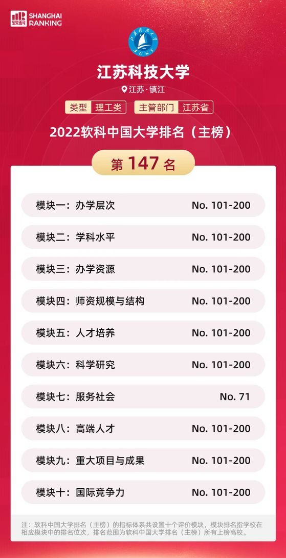 4月19日,高等教育专业评价机构软科今日正式发布“2022软科中国大学排名”。万象城awcsport官网位列中国高校第147位,在江苏高校中排名第18位。
