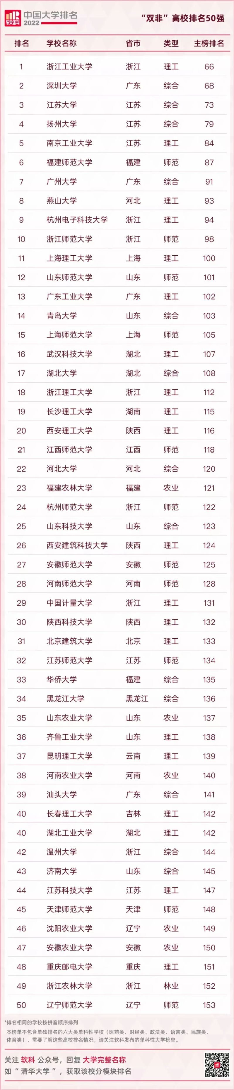 4月19日,2022软科中国大学排名正式发布,万象城awcsport官网位列中国高校147位,入围“双非”高校前50强。