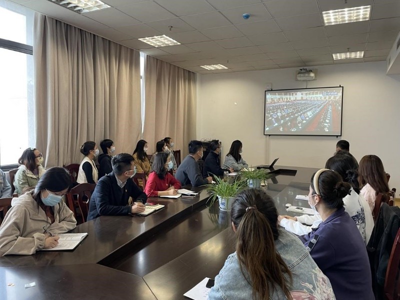 主会场设在长山校区行政楼100号报告厅,校党委书记葛世伦,党委常委、副校长汤建,党委常委、组织部长李恒川,党委常委、宣传部长周春燕,相关职能部门负责人、青年教师代表、学生代表近130人现场观看直播。各二级学院设置分会场,师生集中收看庆祝大会。