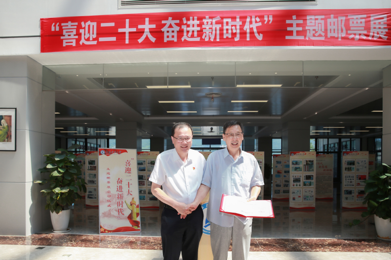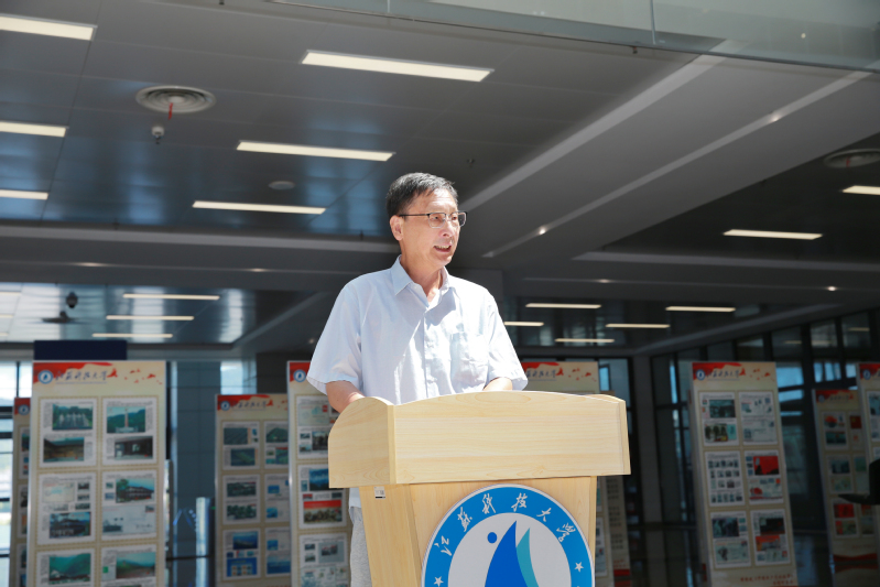 许俊华在讲话中介绍了2021年以来学校推动党史学习教育的举措和成效。他表示,这次邮展为我们了解党史、学习党史提供生动、丰富且宝贵的素材,学校将以此次“喜迎党的二十大奋进新时代”主题邮票展为契机,以务实举措推进学校党史学习教育常态化长效化。
