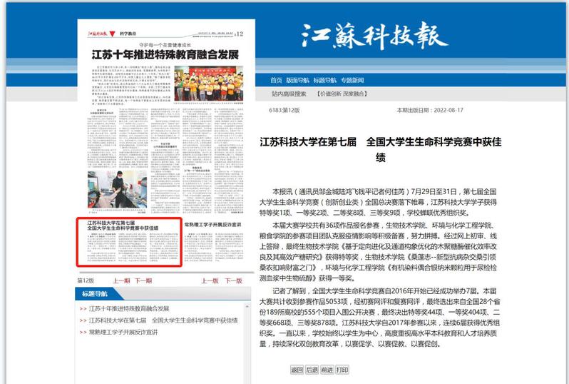 本届大赛学校共有36项作品报名参赛,生物技术学院、环境与化学工程学院、粮食学院的参赛项目团队克服疫情影响等积极备赛,努力拼搏。经过网上初审、线上答辩,最终生物技术学院《基于定向进化及通道构象优化的木聚糖酶催化效率改良及其高效产糖研究》获得特等奖,生物技术学院《桑蓬志--新型抗病杂交桑引领桑农扣响财富之门》,环境与化学工程学院《有机染料偶合银纳米颗粒用于尿检检测血浆中生物硫醇》获得一等奖。