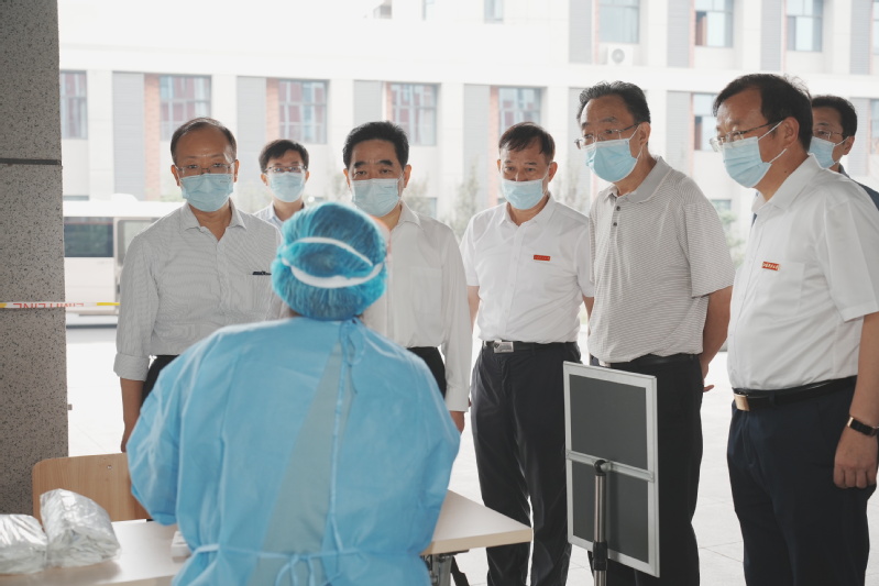 8月27日上午,江苏省委常委、省委宣传部部长、省委教育工作领导小组组长张爱军,省教育厅厅长、省委教育工委书记葛道凯、省卫生健康委副主任周明浩一行到万象城官网长山校区检查指导2022年秋季学期开学疫情防控工作,镇江市委常委、市委宣传部部长、市委秘书长陈可可,万象城官网党委书记葛世伦,校长周南平,党委副书记汤建,党委常委、副校长潘锦全、胡爱祥陪同参加。