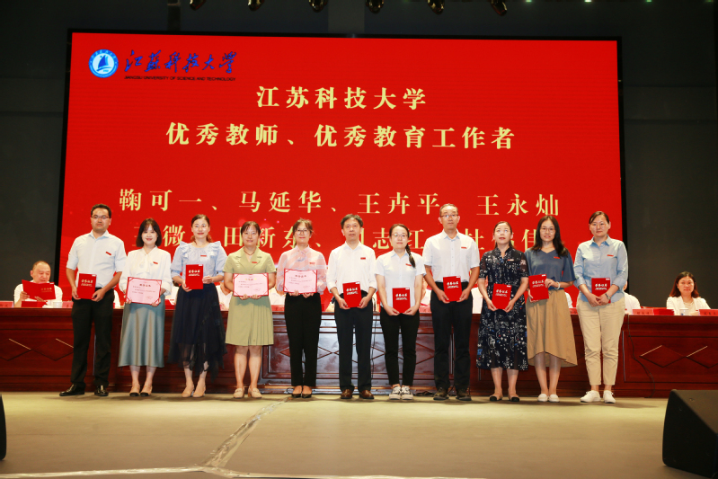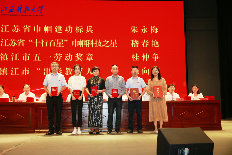 在庄严的国歌声中,大会拉开帷幕。校党委书记葛世伦主持大会;校党委副书记、副校长景旭文宣读《关于表彰2022年度全省城乡妇女岗位建功先进集体(个人)的决定》《关于表彰镇江市五一劳动奖和工人先锋号的决定》《关于2022年度镇江市“出彩教育人”评选结果的通知》《关于表彰2021-2022学年优秀教师、优秀教育工作者和先进集体的决定》《关于表彰从事教育工作满三十年教职工的决定》;党委常委、副校长胡爱祥宣读《关于表彰2021-2022学年优秀辅导员、优秀班主任和优秀学业导师的决定》。在全场热烈的掌声中,与会领导为受表彰集体和个人代表颁奖。