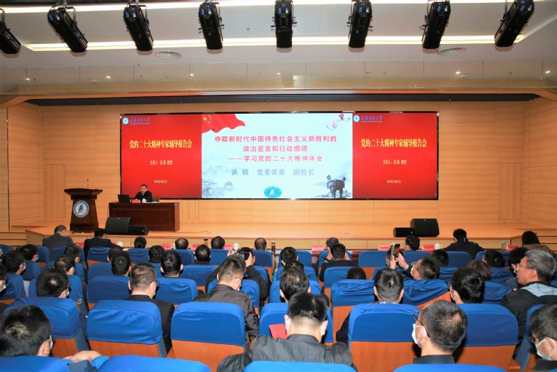“中国共产党为什么能,中国特色社会主义为什么好,归根到底是马克思主义行,是中国化时代化的马克思主义行。”10月27日,学校召开校党委理论学习中心组集体学习扩大会议,党委常委、副校长谈镇教授作专家辅导报告,深入解读党的二十大精神。校党委理论学习中心组成员、科级以上干部、政治理论课教师、辅导员参加会议。学校两地三校区共同聆听。