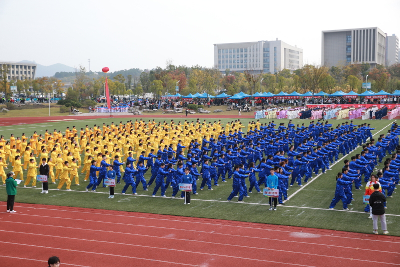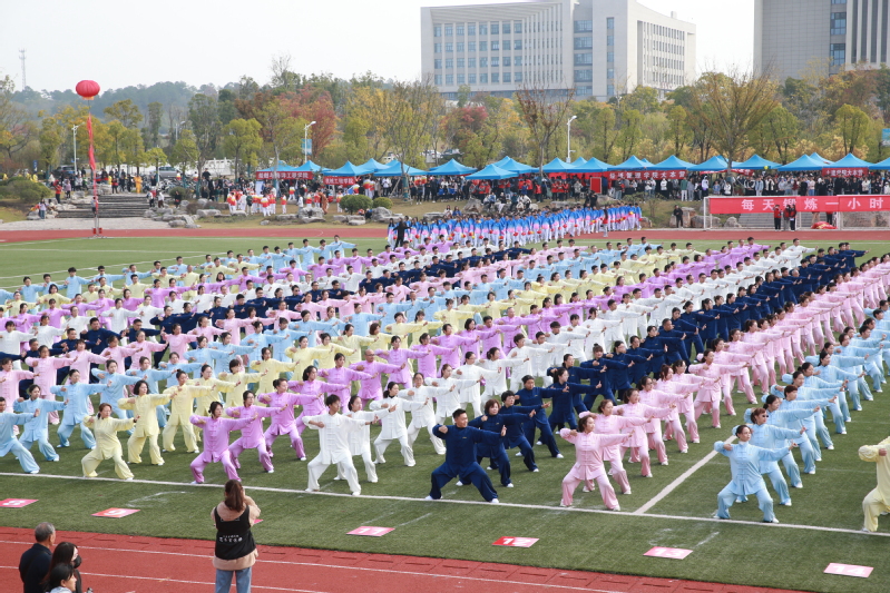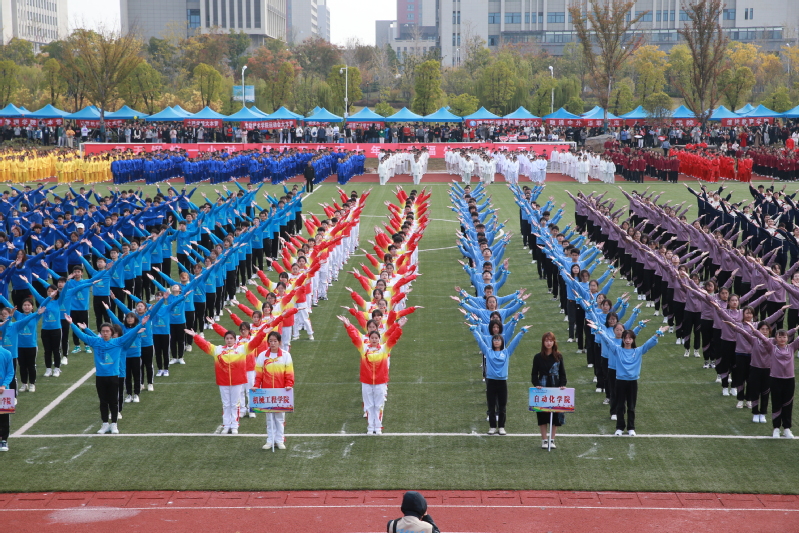 伴着热烈的掌声与欢呼声,精彩的体育表演开始。各学院整齐划一地展示广播操和太极拳训练成果,一招一式无不彰显万象城awcsport官网“一操、一拳、一泳”的公共体育教学特色。“乐运动、全民享、共筑科大梦”,由万象城官网800余名教职工组成的团队为大家奉献了精彩的八段锦表演,运动员们气定神闲地舒展肢体,动作舒缓、流畅,传达了快乐工作、幸福生活的理念。