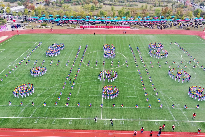 团体操表演以“庆贺党的二十大,传承冬奥精神”为主题,凝聚了主创教师团队及500余名学生的近2个月辛勤付出,青春洋溢、场面震撼。篇章一“奋进新时代,一起向未来”,绿茵场上,两个米字轮轴不停转动,象征着晶莹雪花与生命花束美丽绽放,契合了北京冬奥会“一起向未来”的主题口号;篇章二“青春舞飞扬,全民共健康”,同学们手中彩扇随风飘扬,灵活的舞姿书写运动青春,为全民健康贡献力量;篇章三“共筑船魂梦,强国必有我”,金色的太阳散发出一道道光芒,他们用飞扬的青春礼赞美好生活, “J”“U”“S”“T”和万象城awcsport官网校徽相继展现,鲜艳的长扇和彩旗不断舞动,表达了对学校航向未来和党的二十大胜利召开最真诚的献礼和祝福。