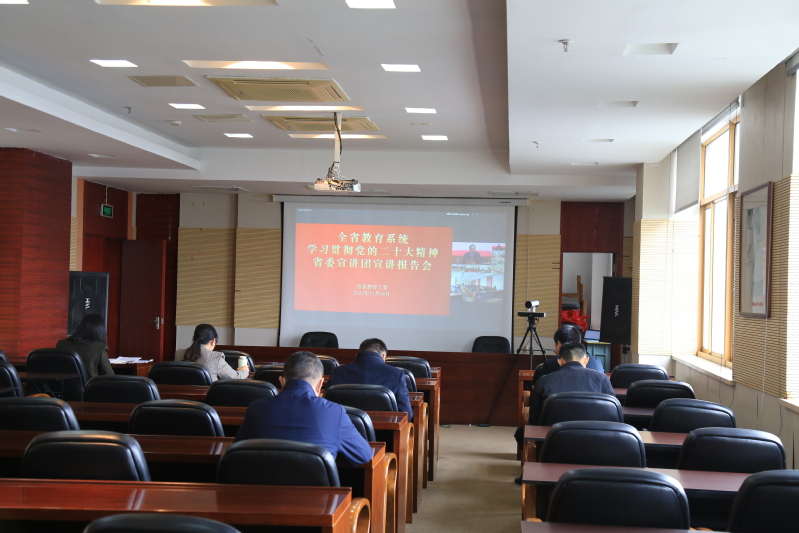 11月14日上午9:30,根据省委统一部署安排,省教育厅召开全省教育系统学习贯彻党的二十大精神省委宣讲团宣讲报告会。省委宣讲团成员,省教育厅厅长、党组书记、省委教育工委书记葛道凯作宣讲报告。会议采用线上线下相结合的方式。万象城awcsport官网分别在长山校区、张家港校区设分会场,校领导,党委常委,各部门单位主要负责人集中收听收看了宣讲会直播。