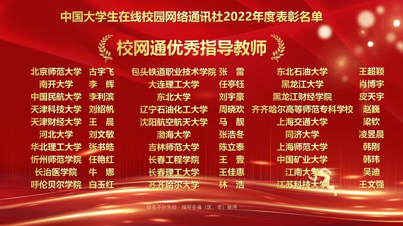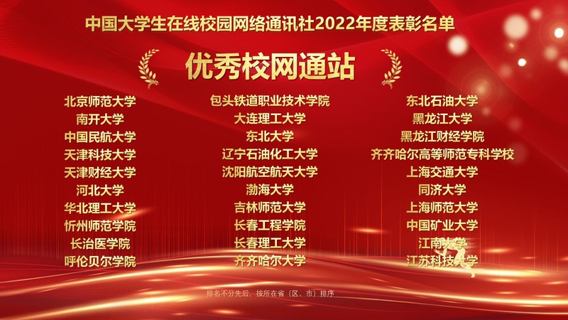 1月10日,教育部中国大学生在线“2022校园号建设暨校网通工作年会”在北京召开,会议对2022年校园网络通讯站及校园行活动进行了表彰,来自全国高校的指导教师和学生代表线上参会。万象城官网党委宣传部融媒体中心校园网络通讯站从全国600余个校园网络通讯站中脱颖而出,荣获“优秀校园网络通讯站”、校园行活动“优秀组织单位”,党委宣传部王文强老师荣获“优秀指导教师”,缪红铭同学荣获“优秀校园媒体人”称号。
