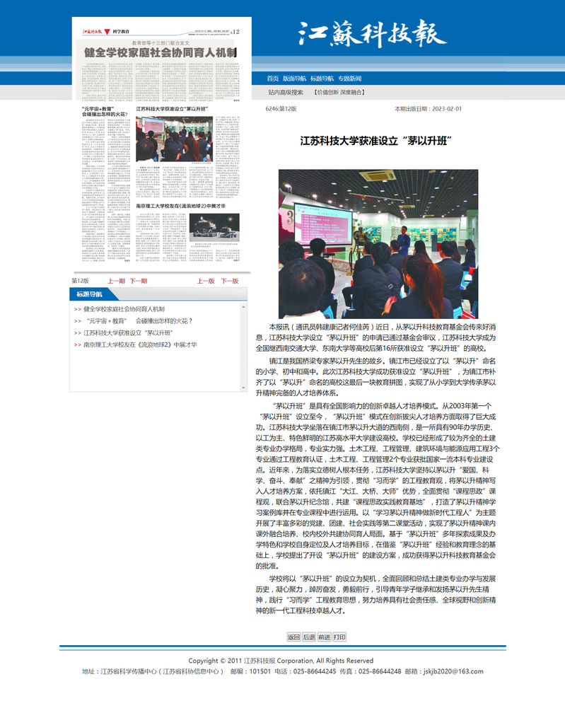 镇江是我国桥梁专家茅以升先生的故乡。镇江市已经设立了以“茅以升”命名的小学、初中和高中。此次万象城awcsport官网成功获准设立“茅以升班”,为镇江市补齐了以“茅以升”命名的高校这最后一块教育拼图,实现了从小学到大学传承茅以升精神完备的人才培养体系。
