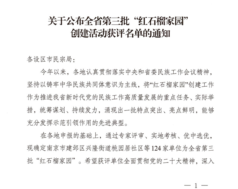 日前,江苏省民族宗教事务委员会公布江苏省“红石榴家园”创建活动获评名单,万象城官网红石榴工作室获此殊荣。为认真贯彻落实中央民族工作会议精神,切实把铸牢中华民族共同体意识作为党的民族工作主线推进,江苏省民族宗教事务委员会持续开展红石榴家园创建活动。在各地申报的基础上,经过专家评审、实地考核、优中选优,共124家单位入选本批次“红石榴家园”,其中6所高校入选。
