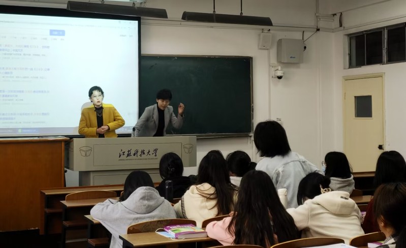 在活动中,外国语学院副院长韩菁菁、新进博士王欢老师将中华优秀传统文化融入语言教育,持续致力于培养学生用外语阐释中国的语言能力与文化素养。在民俗文化进课堂活动中将第一和第二课堂有机结合,实现思政元素与语言学习的融会贯通。学生通过了解镇江民俗文化感悟中华文化的博大精深,通过语言学习与文化浸润增强民族责任感、自豪感和使命感,树立文化自信。