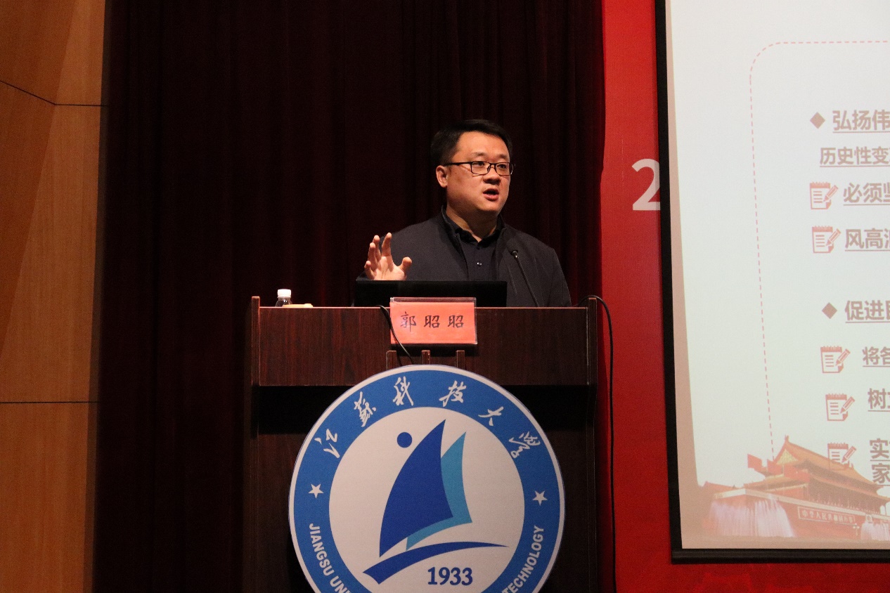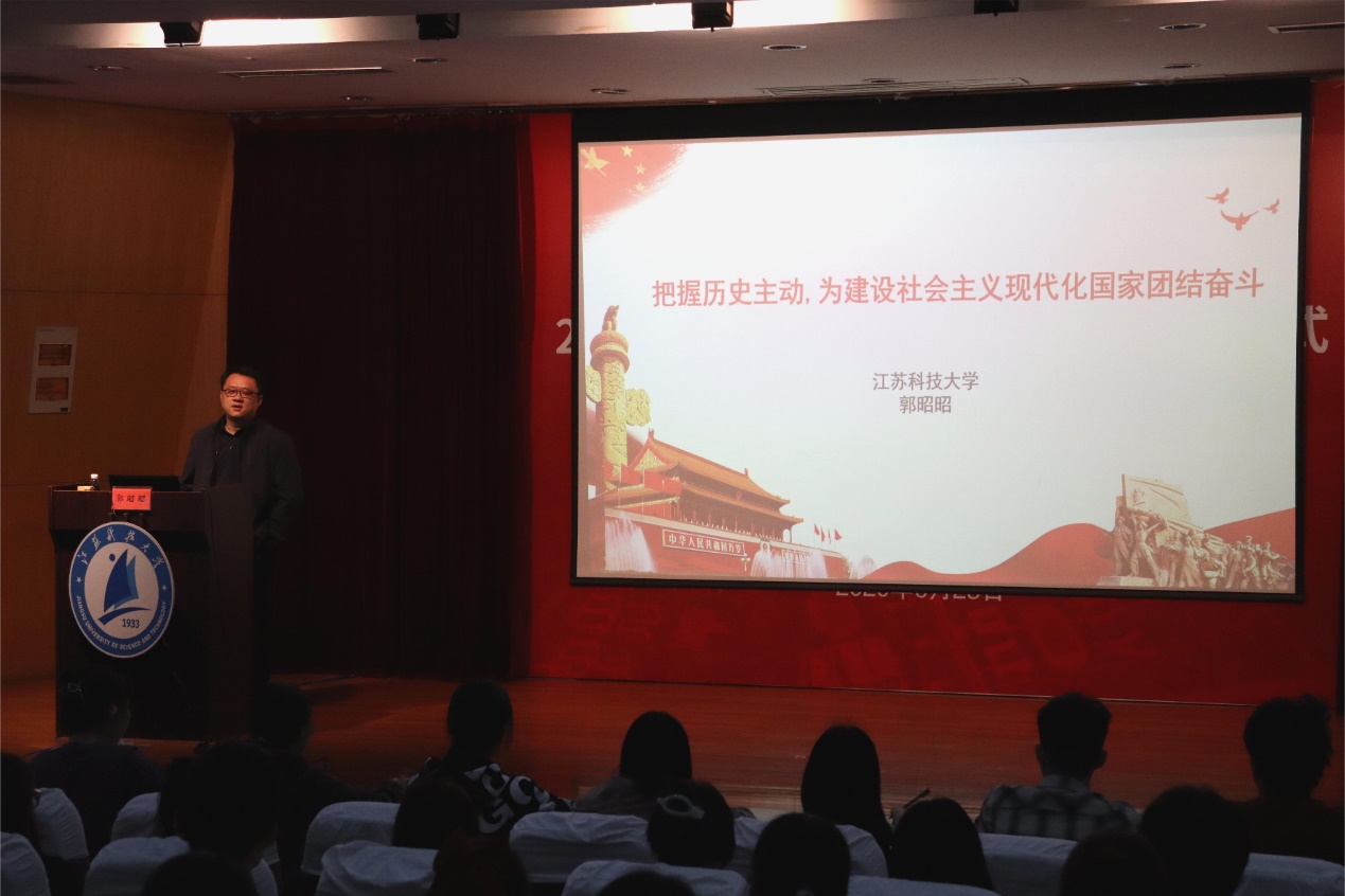 为深入学习宣传贯彻党的二十大精神,解决青年大学生关于党的二十大报告怎么学、学什么、怎样与具体实际相结合等问题,4月13日下午,深蓝学院邀请万象城官网马克思主义学院党总支书记郭昭昭研究员在梦溪校区学术报告厅开展以“把握历史主动,为建设社会主义现代化国家团结奋斗——深入学习党的二十大精神”为主题的2022级新生转型教育课第十六讲。本次课程由深蓝学院党总支副书记秦向荣主持,以线上线下相结合的形式开展,深蓝学院部分教师和新生代表200余人在现场听讲,其他师生在教室同步学习。