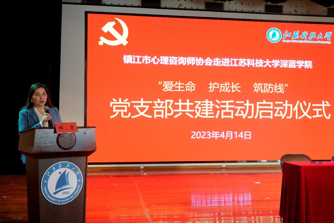 近日,深蓝学院与镇江市心理咨询师协会党支部合作共建启动仪式在梦溪校区东苑四楼举行,学院党总支书记、院长杨建超,市心理咨询师协会会长林霞出席签约仪式并讲话,镇江市部分心理咨询师及学院师生代表、志愿者参加了本次活动,签约仪式由深蓝学院党总支副书记秦向荣主持。