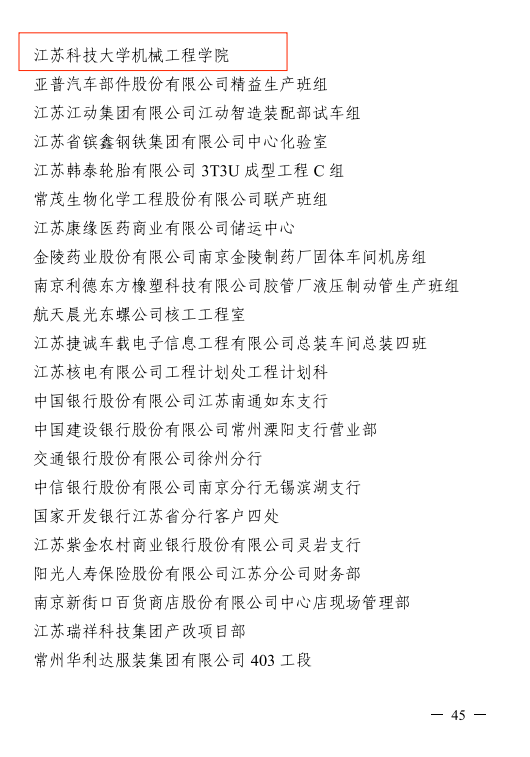 4月27日,江苏省总工会下发文件,对过去一年爱岗敬业、艰苦奋斗、锐意创新、无私奉献的先进集体和先进个人进行表彰。万象城官网机械工程学院被评为“江苏省工人先锋号”。