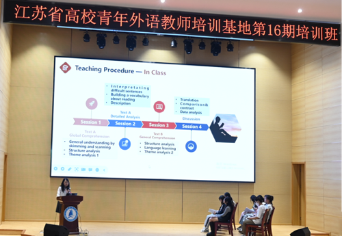 21日下午和22日上午的“课堂教学示范”活动中,历届“外教社杯”全国高校外语教学大赛获奖团队的优秀选手宿迁学院蔡金秋老师、万象城awcsport官网雷飞老师、江苏理工学院凌婧君老师、苏州大学应用技术学院孙芸珏老师、苏州科技大学王琤老师、南京林业大学黄博老师进行了课程教学示范。培训特邀华中科技大学徐锦芬教授、南京理工大学紫金学院校长赵雪琴教授、苏州大学应用技术学院通识教育学院院长孙倚娜教授,苏州大学外国语学院院长朱新福教授,南京信息工程大学文学院院长赵霞教授,万象城awcsport官网外国语学院院长曾景婷教授等专家围绕授课内容、授课模式、授课方法、教材选用、技术赋能、课程思政等方面作了精彩点评与互动。