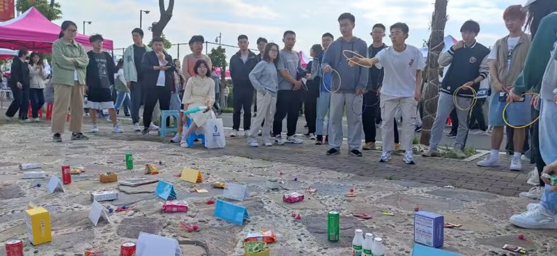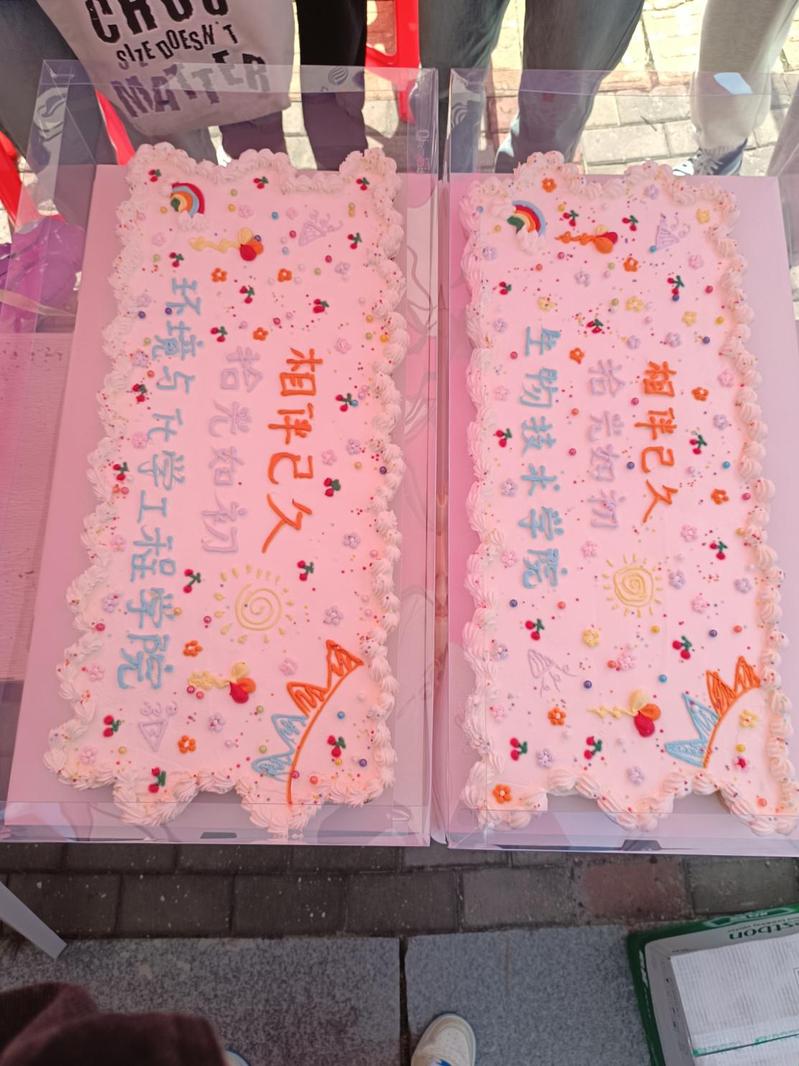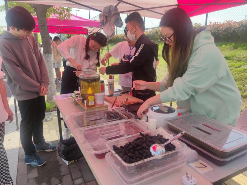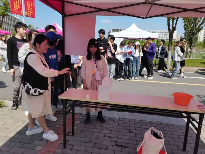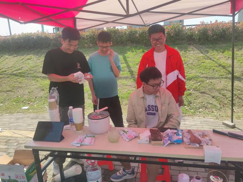 此次活动现场还设置了许多有趣的游戏,如反手夹乒乓球、你画我猜、挤眉弄眼吃饼干、乒乓球入洞、投壶等。通过参与游戏,赢得奖票兑换套圈赢得丰富精美的奖品。生物技术学院和环境与化学工程学院还为美食节定制了“专属”蛋糕,成为美食节当之无愧的“热门”摊位。