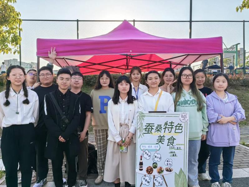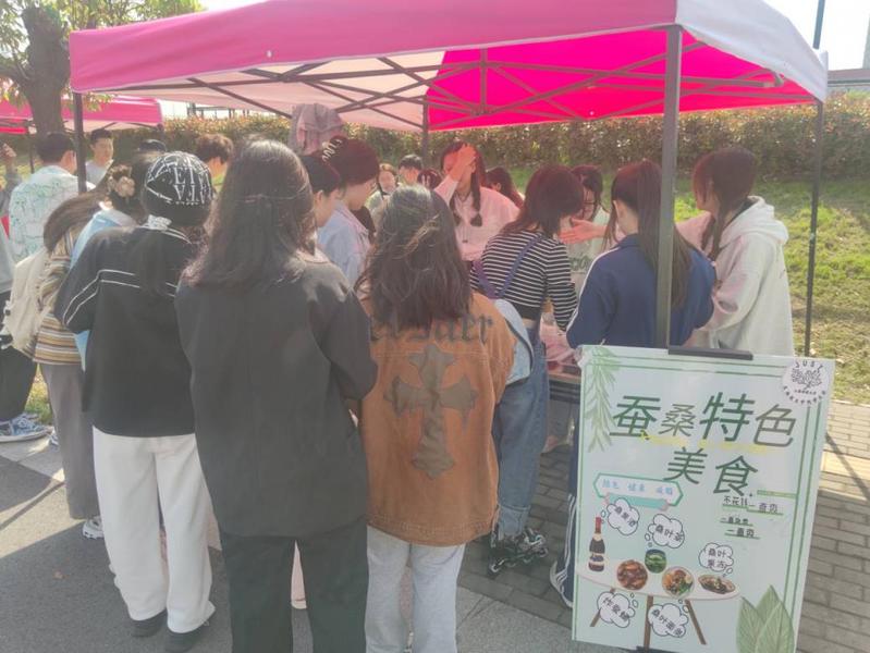 本届美食节除了学生摊位外,生物技术学院还依托学院特色,推出了蚕桑特色摊位,外酥里嫩的炸蚕蛹、清香宜人的桑叶茶、酸甜可口的桑葚、QQ弹弹的桑叶、桑葚果冻、余韵无穷的桑果酒等多种蚕桑美食,供广大师生免费品尝。蚕桑特色摊位,旨在让同学们在味蕾的享受中,从全然不同的角度体会蚕与桑的独特魅力。
