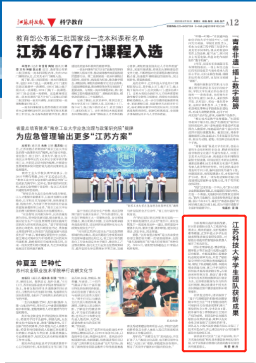 江苏科技报2023年6月16日A12版 http://www.jskjb.com:8081/xpaper/appnews/112370/123306/133923-1.shtml