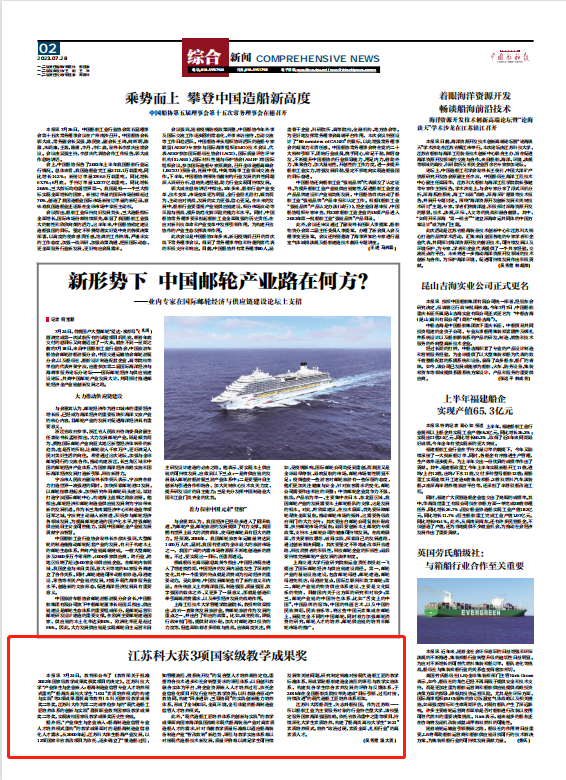 本报讯 7月24日,教育部公布了 《教育部关于批准2022年国家级教学成果奖获奖项目的决定》。万象城awcsport官网“产业伴生与企业嵌入:船海制造业信管专业人才培养模式重构”“船海类高校大学生‘1621’素质培养模式的构建与实践”等2项成果喜获高等教育(本科)国家级教学成果奖二等奖,江苏科大作为第二完成单位参与的“现代造船工匠培养体系的创新与实践”喜获职业教育国家级教学成果奖二等奖,实现该校国家级教学成果奖历史性突破。