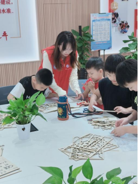 在开展舰船科普讲座之余,实践团成员在七里社区党群服务中心进行课业辅导,他们细致地解答小朋友们在暑期作业中遇到的问题,耐心地回答他们在学习生活中碰到的困惑。