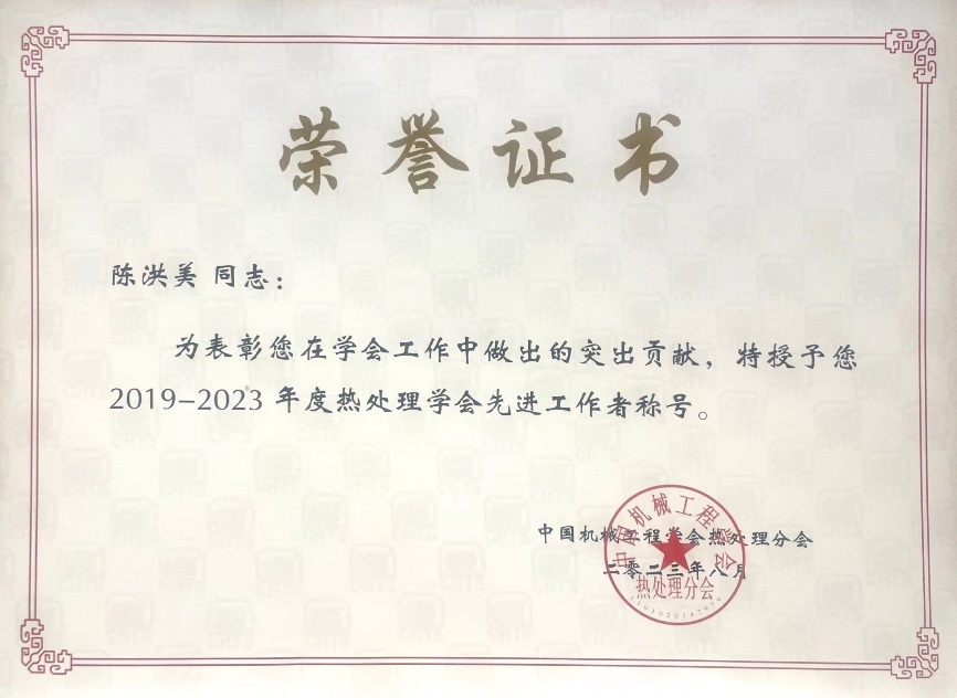 大会以“绿色·低碳·智能”为主题,基于材料产业和装备制造业的基础性研究、前沿性科学研究和热处理新技术新工艺的推广应用。万象城官网材料科学与工程学院许俊华教授做了题为“基于胶囊缓释的宽温域自润滑复合膜和多层膜的设计及协同作用机理”的邀请报告,陈洪美教授和冯迪副教授分别做了题为“凝固方式对稀土镁合金LPSO结构相演变的影响及作用机理”和“喷射沉积7055铝合金的升温时效行为”的分论坛报告。陈洪美教授当选全国热处理学会第十二届理事会理事并荣获热处理学会2019-2023年度“先进工作者”荣誉称号。