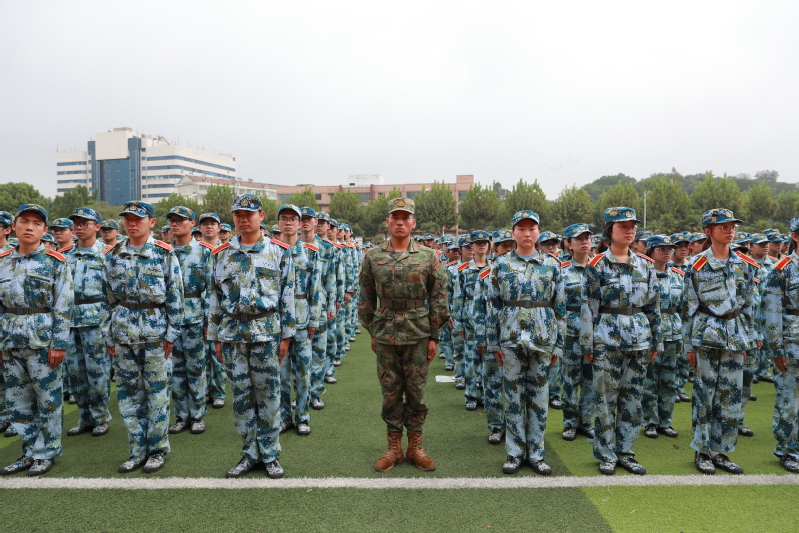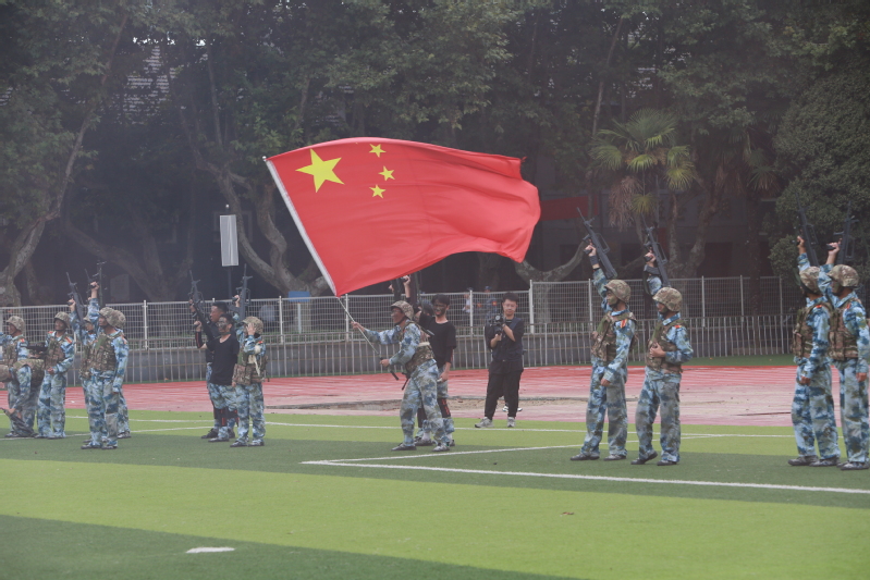 在过去的十多天里,同学们参加了军训,在跌爬滚打中锻造精气神。两幅巨大的旗帜从后往前在新生们手中接续相传,次第铺展。通过传递国旗、校庆旗,同学们表达了对祖国母亲的热爱和对学校的美好祝愿。“为校争光”“振兴中华,强国有我;爱校荣校,责任在肩” 的口号铿锵有力,述说着全体新生信念在心,使命在肩。护旗方阵后,一到十五营迈着铿锵的步伐,喊着嘹亮的口号,带着青春和热情,依次走过主席台。