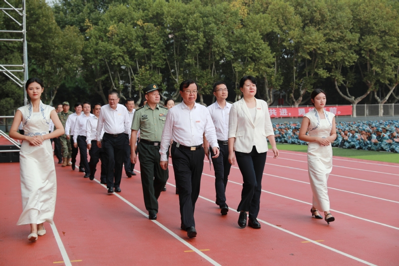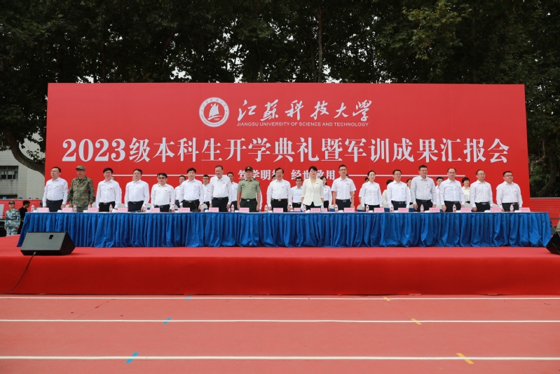 校党委常委、副校长胡爱祥主持万象城awcsport官网2023级本科生开学典礼。73091部队副旅长杨明付,2011届校友、南昌大学博士生导师王仲夏,校领导汤建、任南、安祥卫、李木旺、施伟东、周宏根、叶永林,相关职能部门、各学院负责人,承训部队教官以及镇江校区2023级本科生,在梦溪校区体育场参加开学典礼。