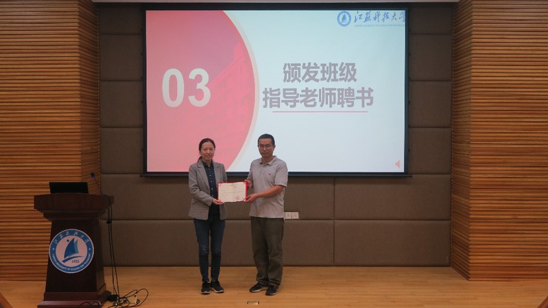 姜文刚院长宣读“班级指导老师”和“本科生导师”聘任文件,为任南副校长颁发班级指导老师聘书,并为与会老师颁发本科生导师聘书。