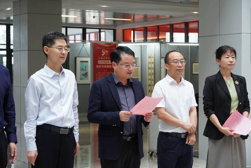 校党委常委、副校长周宏根致开幕词。他指出,值此学校九十周年华诞之际,承蒙师生、校友厚爱,或以丹青描绘依山傍湖的美丽校园,或用笔墨书写磅礴动人的船魂精神,纷纷惠寄精品之作,为办学90周年献礼。为此,学校特举办本次主题展,以此进一步彰显校园文化精神,激发广大师生爱校、荣校、兴校、强校之情。希望广大师生员工以此次书画摄影作品展为契机,进一步提升文化自觉和文化自信,不断增强价值认同和行动自觉,再接再厉,开拓创新,更好地运用自己手中的画笔或镜头,讴歌伟大的新时代,讴歌江科大的新发展,为学校文化事业大发展大繁荣做出新的更大的贡献。