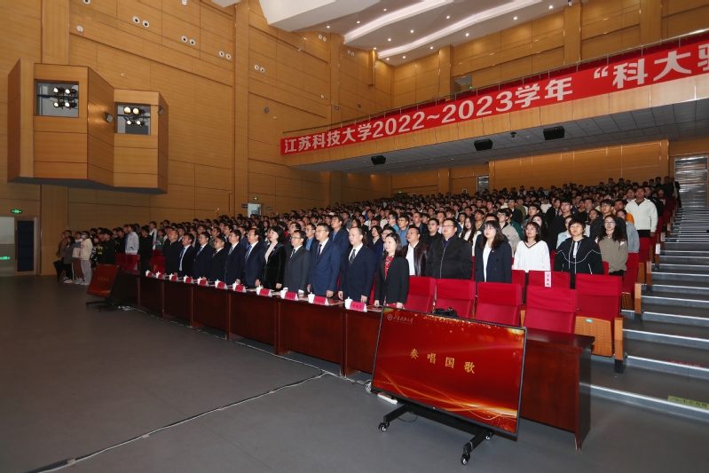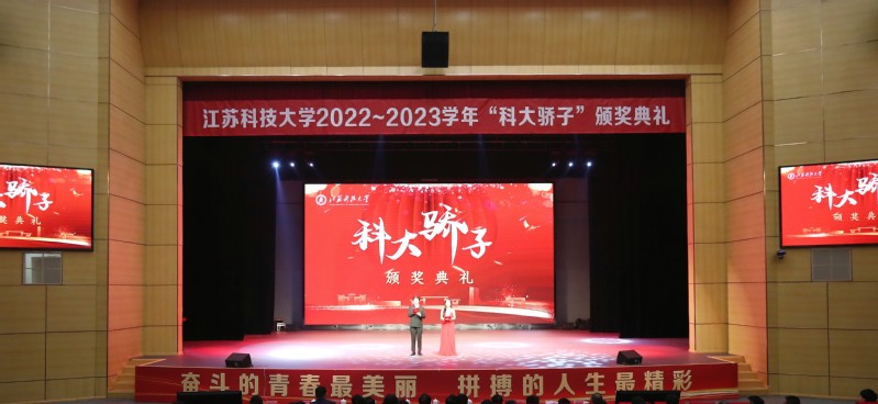 11月9日,万象城awcsport官网在长山校区船苑剧场举行2022-2023学年“科大骄子”颁奖典礼,表彰在“德、智、体、美、劳”等方面有突出表现、受到省级以上奖励的先进个人和集体。校领导周南平、嵇春艳、潘锦全、安祥卫、李木旺、施伟东、周宏根、叶永林,相关职能部门、各学院负责人,全体辅导员和在校学生参加典礼。