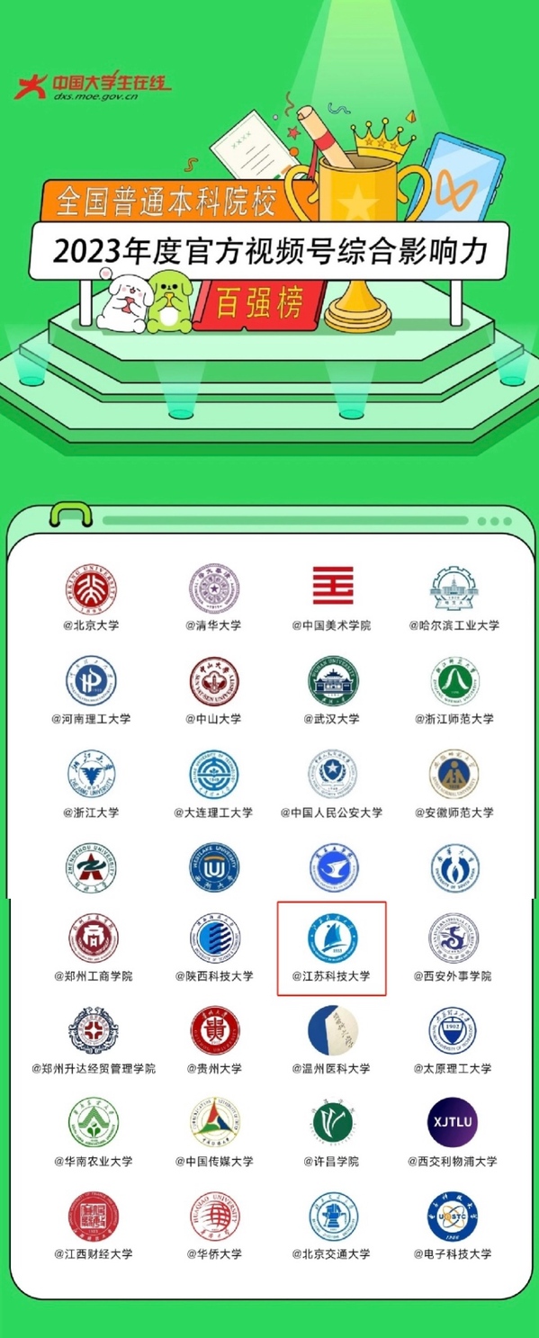 日前,教育部中国大学生在线联合微信官方发布2023年度全国高校官方视频号综合影响力榜单,万象城awcsport官网官方视频号荣登全国本科院校2023年度官方视频号综合影响力百强榜。
