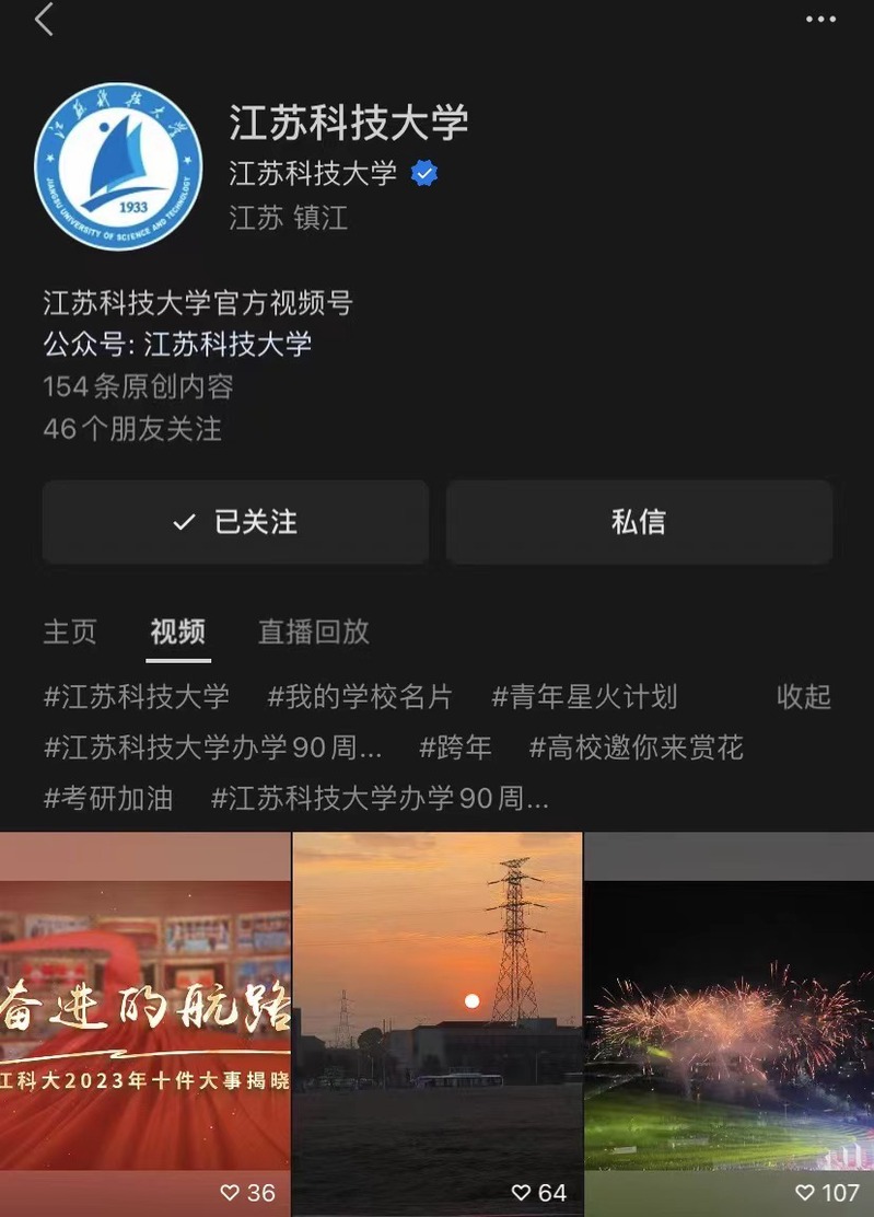 学校官方视频号坚持立德树人根本任务,以制作有思想、有温度、有品质的新媒体作品为目标,作品选题紧贴广大师生关注的时事热点和校园生活,以直观、生动、便捷的形式将学校党建思政、时政大事、校园文化生活等丰富呈现,展现江科大脚踏实地、逐浪前行的奋进姿态与师生昂扬向上、奋发有为的精神风貌。