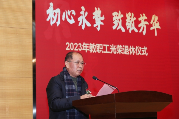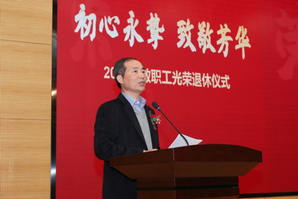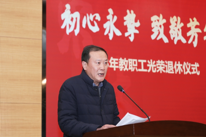 党委书记周南平在致辞中诚挚祝贺各位老师光荣退休,感谢大家对学校教育事业的倾情奉献。他指出,九秩薪火传承的江科大每一项成就、每一步发展,都凝聚着一代又一代教职工的心血与智慧。学校会感恩、会铭记为江科大奋斗过的每一位教职员工。希望荣休教职工在人才培养、学科建设、科学研究、提携和帮助青年教师等方面发挥余热、贡献力量。学校会继续关心关爱荣休教职工,在全校上下大力营造尊重老教师、学习老教师、关爱老教师的浓厚氛围,积极为荣休教工办实事、做好事、解难事,为荣休教职工贡献智慧、贡献力量搭建平台。