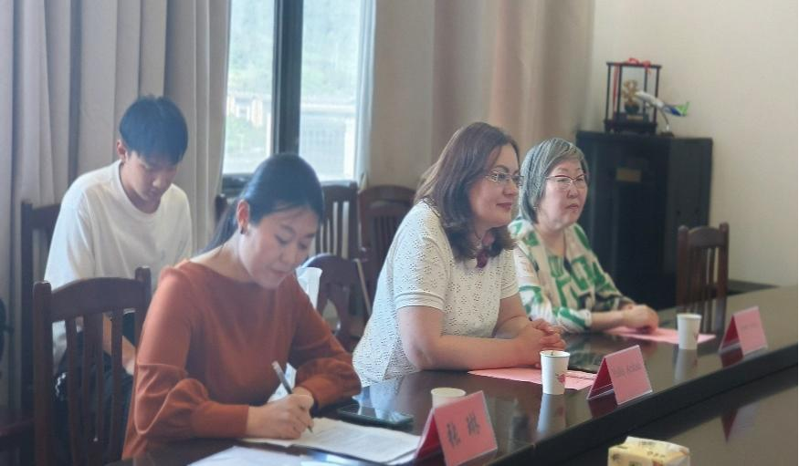 近日,俄罗斯伊尔库茨克国立大学语言学、外语与传媒学院院长尤利娅·阿尔斯卡娅(Yulia Arskaya)一行来校访问交流,外国语学院院长曾景婷、副院长周树军,俄语系全体教师及学生代表参加交流座谈。会议由俄语系系主任刘志强主持,并由俄语专业教师张琳翻译。