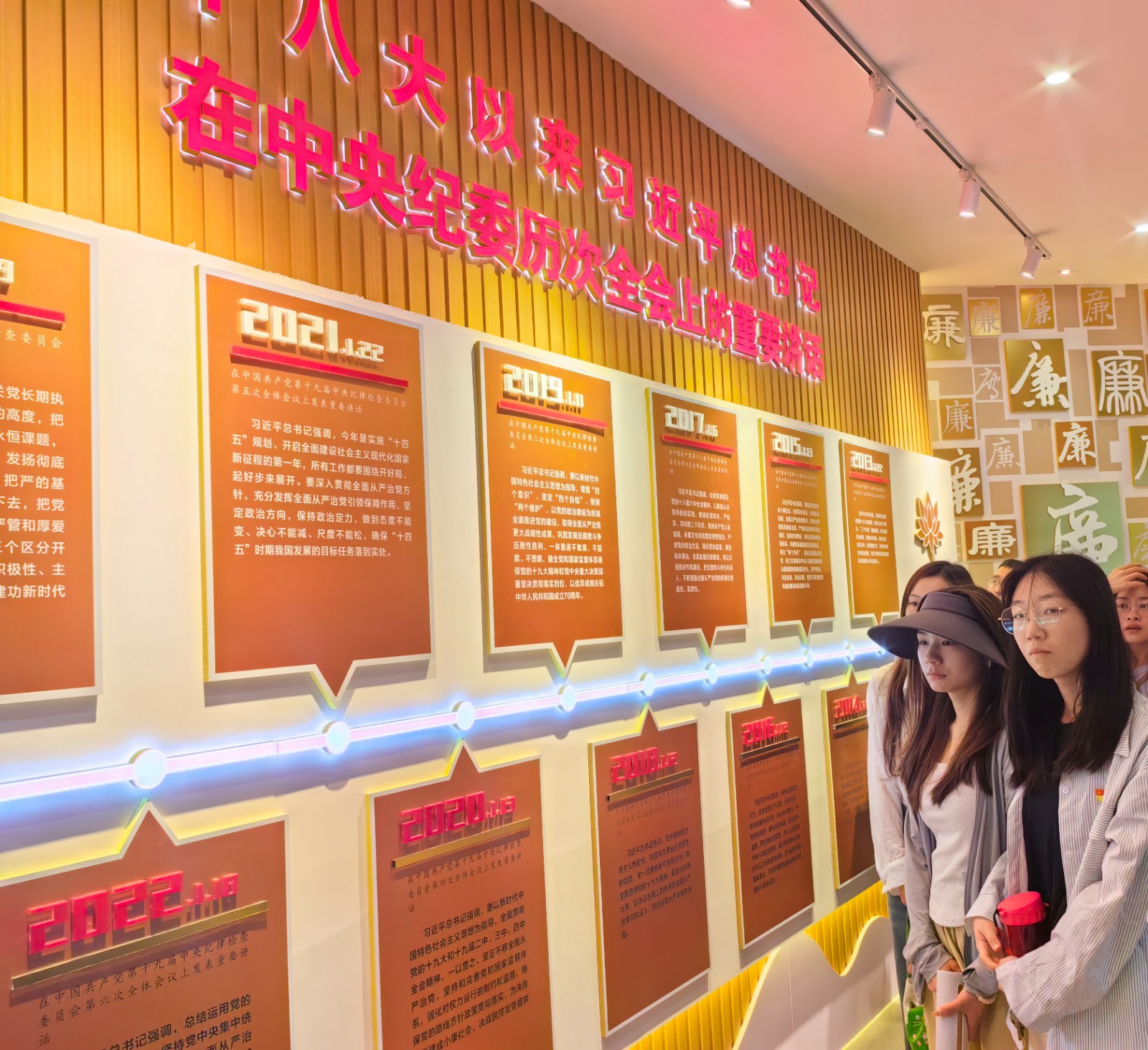 廉洁文化馆基于中国廉洁文化传承,深刻展示了我党坚持反腐倡廉、不断加强自身建设的发展史以及十八大以来一体推进“三不腐”的伟大实践。“心有廉规,行有廉矩;毫厘分明,方能正清修身。”在廉洁文化馆中,经管学院师生党员集体观看了廉政微视频《雕刻可以再来,人生不能重启》,鞭策自己心存戒尺、行不逾矩,警钟长鸣、慎终如始。随后,大家在讲解员的带领下,依次参观学习了文化蕴廉、君子传廉、反腐倡廉和丹心润廉等展区。通过诸多传统文化、家风文化、红色文化中的廉洁元素,了解了历代名人的廉洁文化故事、清廉典型以及发生在我们身边的违纪违法案例,同时回顾了中国共产党的反腐倡廉历程,在潜移默化、耳濡目染中植“廉”于心。