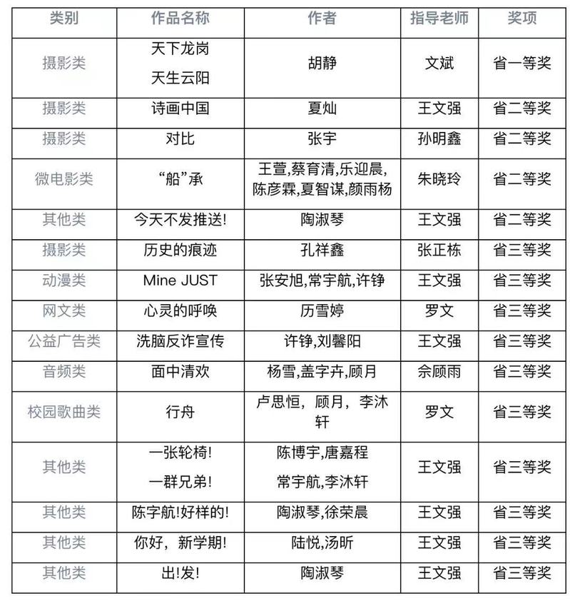 第三届江苏省大学生网络文化艺术节获奖情况