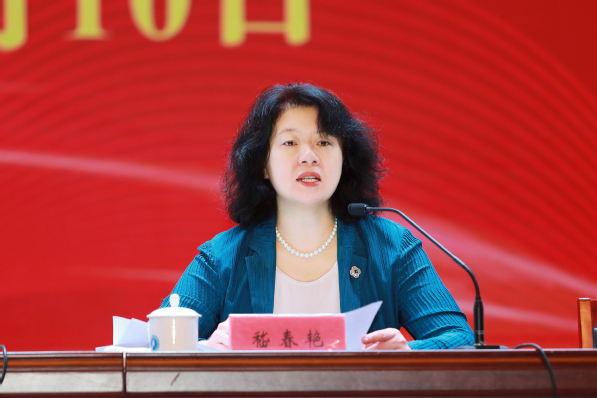 校长嵇春艳致辞,代表学校向全力奋斗在学校事业高质量发展各条战线上的全校教职工致以最崇高的敬意和最诚挚的节日问候,向受到表彰的先进集体和先进个人表示热烈祝贺。