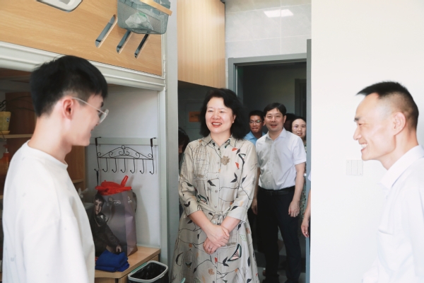 在长山校区,校领导一行走访新生宿舍。周南平详细了解新生入校后的各项服务保障条件,特别是新生入住后的适应情况,叮嘱随行相关部门要认真听取学生心声,进一步细化各项服务举措,努力让大家感受到江科大这个“新家”的温暖。