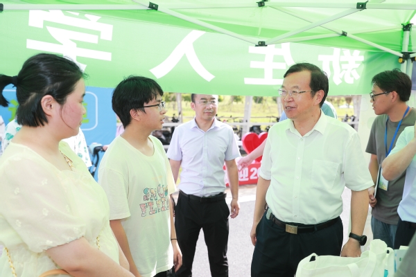 校党委书记周南平,校长嵇春艳,党委常委、副校长胡爱祥,党委常委、副校长周宏根与相关职能部门负责人先后前往迎新现场,深入各学院新生接待点、学生宿舍、校园卡及银行卡办理处等重要迎新点位,了解迎新工作情况和报到实时进展,看望来报到的新生和家长,与他们亲切交流、合影留念,慰问认真工作的师生员工和志愿者。