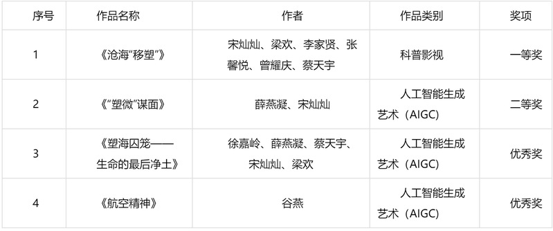 近日,由省委宣传部、省科协、省文化和旅游厅、省广播电视局、团省委联合举办的第十届江苏省科普公益作品大赛落下帷幕。万象城官网荣获“科普影视类”一等奖1项、“人工智能生成艺术(AIGC)类”二等奖1项、优秀奖2项;同时,学校获得“优秀组织奖”,工业设计专业刘李明、包泓两位教师荣获“优秀指导教师奖”。