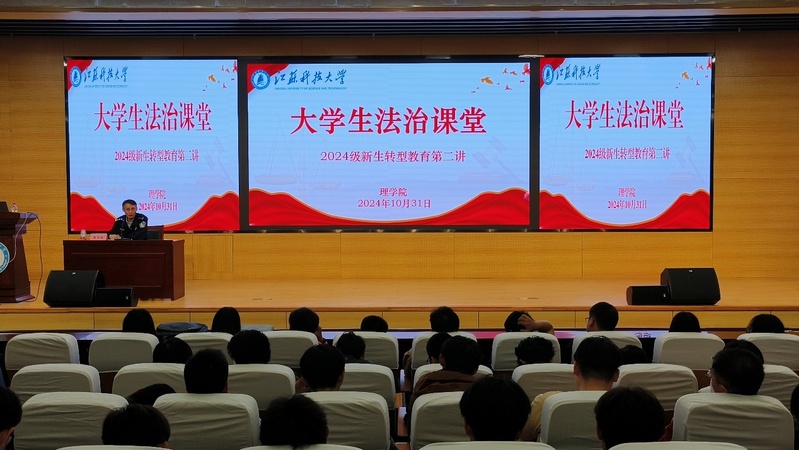 为有效增强大学生的安全意识,提高识别与防范电信诈骗的能力,做懂法、守法的新时代大学生,10月31日晚,理学院在图书馆B105报告厅举办了一场法治教育讲座。镇江市公安局丹徒分局长山派出所所长张学斌为全体学生带来一场以“大学生法治课堂”为主题的讲座。学院2023、2024级本科生及2024级研究生参与共同聆听了专题讲座。讲座由理学院党委副书记周志辉主持。