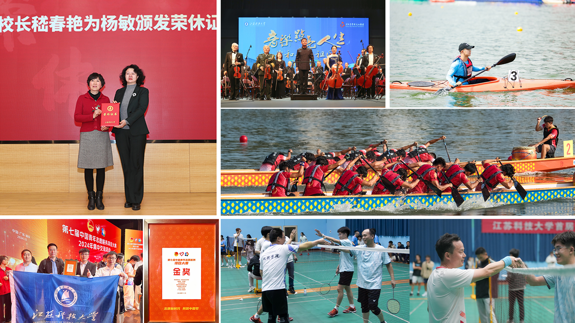 推进校园文化建设,以文铸魂、以文育人、以文化人,让校园成为坚定大学生文化自信的前沿阵地。满天星业余交响乐团走进校园,举办首届“深蓝杯”师生羽毛球联谊赛,“‘船’承科学精神,体验传统文化”,“初心永挚,致敬芳华”教职工荣休仪式,“情暖科大,多彩‘家’节”“党建引领巾帼红,同心共筑科大梦”等系列活动。承办江苏省大学生龙舟锦标赛,在第7届全国大学生皮划艇锦标赛中首夺金牌,“守护大江豚影,守望美丽中国”志愿服务项目荣获第七届中国青年志愿服务项目大赛金奖,13个志愿宣讲团入选全国大学生志愿宣讲服务团。