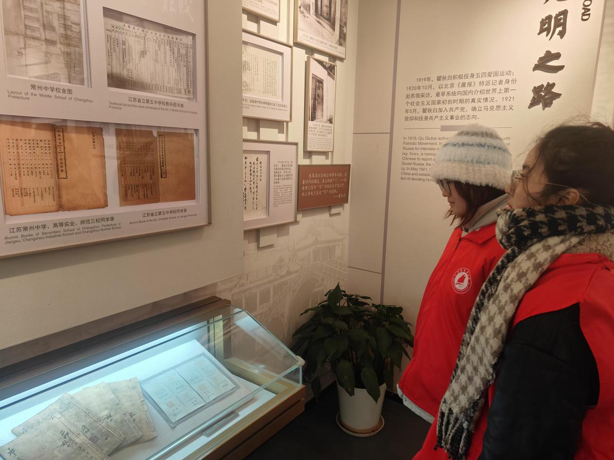 12月15日,实践团部分成员来到了常州三杰纪念馆。纪念馆以瞿秋白、张太雷、恽代英三位革命先烈为主题,通过图片、文字、实物等多种形式,全面展示了他们为革命事业英勇奋斗的光辉一生。在纪念馆内,实践小队成员认真聆听讲解,仔细观看展品,深刻感受到了三位革命先烈坚定的理想信念和无私的奉献精神。大家纷纷表示,要以三位革命先烈为榜样,不断汲取前进的力量,为实现中华民族伟大复兴的中国梦贡献青春力量。