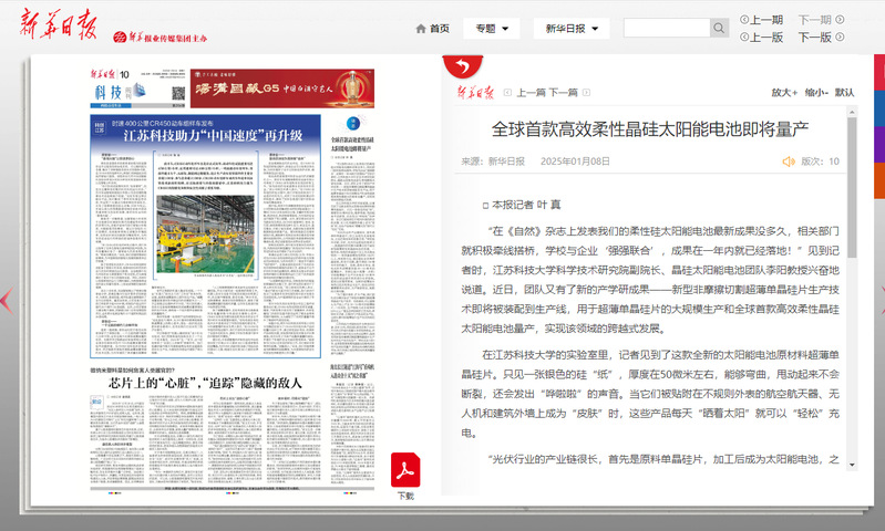 万象城awcsport官网副校长叶永林告诉记者,去年12月,项目团队首次获得了2000万元的江苏省科技重大专项支持资金,学校正积极与省内龙头光伏企业携手,促成采用新型非摩擦切割超薄单晶硅片生产技术的生产线尽快投产。“预计未来3到5年,全球首款高效柔性晶硅太阳能电池系列产品将实现量产,陆续走向成熟的商品市场,助力我省打造世界级光伏高质量发展产业集群。”