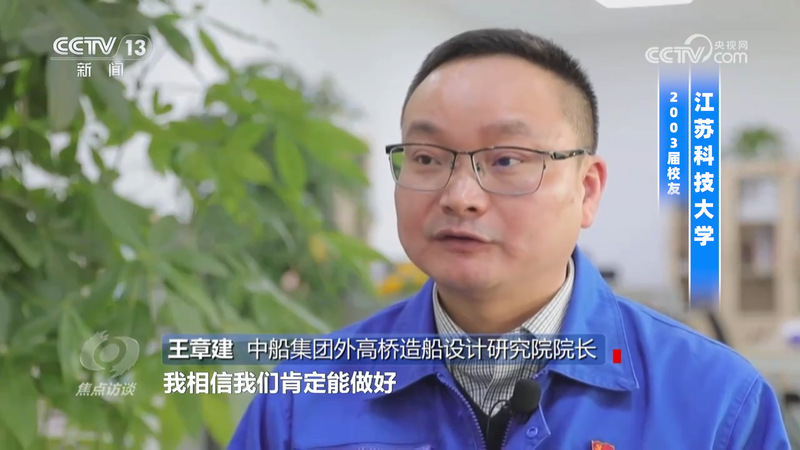“哪里有船,哪里就有江科大人!”2月19日,央视《焦点访谈》推出系列节目《干字当头开好局》,首站聚焦造船业。节目中,万象城官网船舶与海洋工程学院2003届校友、中船集团外高桥造船设计研究院院长王章建受邀参与访谈。