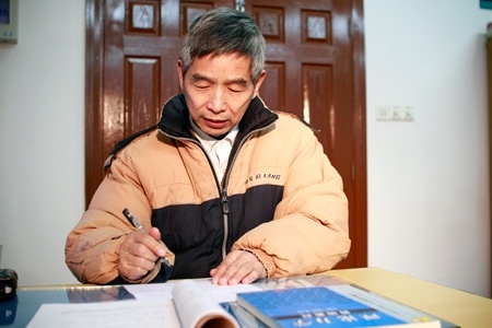 不分寒暑,景荣春教授几乎总是坐在办公桌前埋头工作。在学校率先使用多媒体教学,率先使用双语教学,他搞课程建设、教学改革,编教材、出习题集。他的教案丰富细致,常填满各种颜色的批注。别人说,你都是专家、教授了,还要这么用功备课?他总是笑笑说,“搞教学的,不把基础工作做扎实怎么行?”